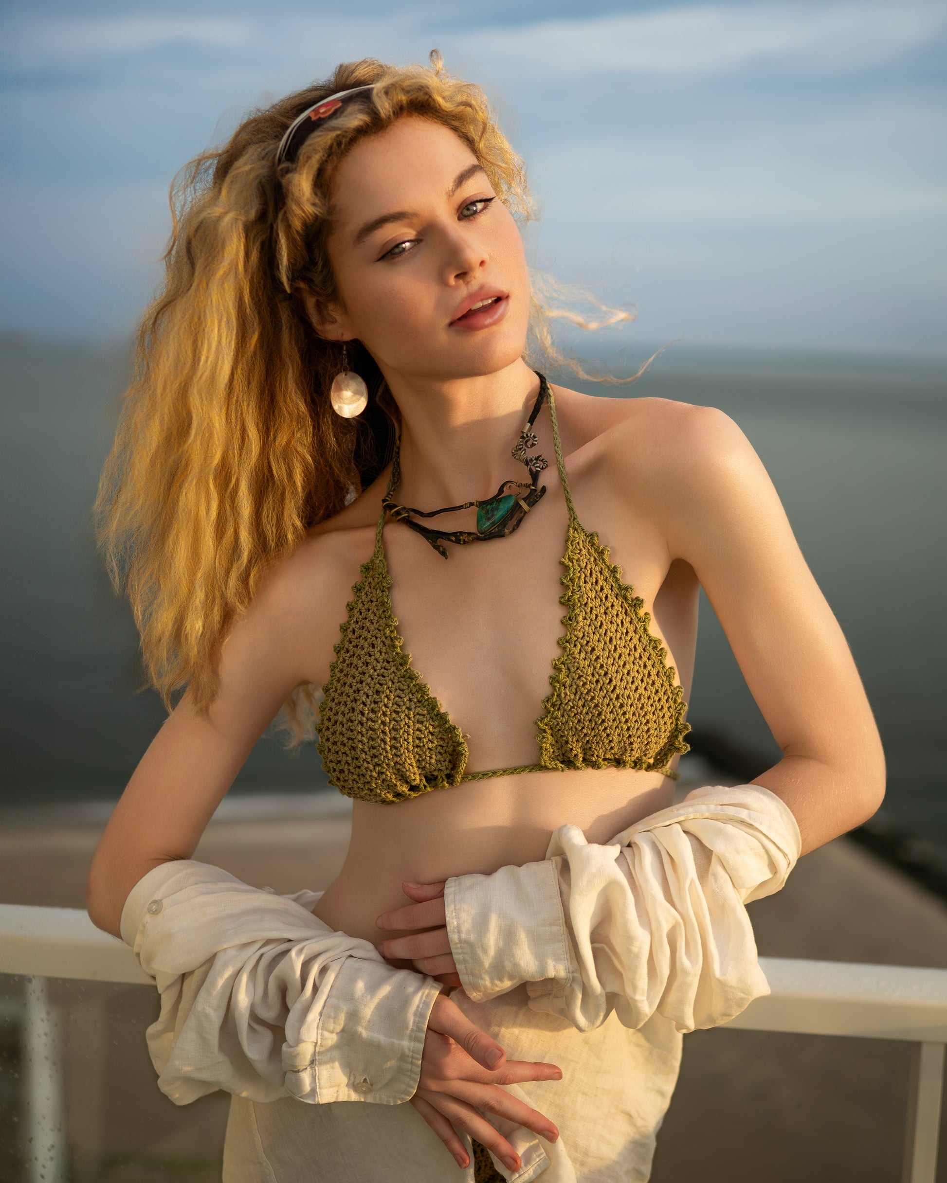Minimalist and endlessly versatile, the Marée String Tie Top is hand-crocheted from eco-conscious fibers for a lightweight, breathable fit. Featuring adjustable ties at the neck and back, this style offers customizable coverage and an effortless silhouette.
